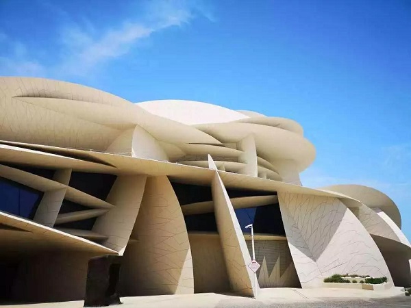 以“沙漠玫瑰”为原型建造的卡塔尔国家博物馆是由著名设计师让.努维尔(Jean Nouvel)设计的,其旨在向世界展示阿拉伯世界古老的历史传统和超现代的艺术文化。博物馆永久展通过远古生灵、人文与生活以及未来展望四个部分带领游客体验卡塔尔的过去,现在与未来,而目前的临展主题是讲述多哈的现代化发展之路。该馆总占地面积达2.1万平方米,馆内包含约8000平方米的永久性展厅、约2000平方米的临时展厅,一个可容纳220人的礼堂和一个文物研究中心,此外还有多家咖啡馆、餐厅和精品店等餐饮服务设施。