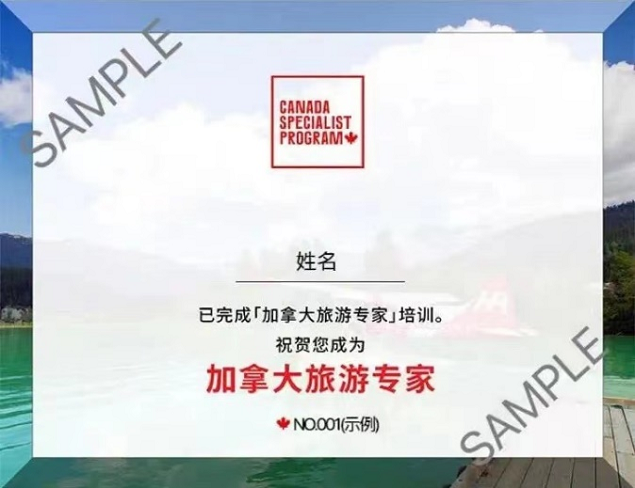 专属编号证书:在2023年1月15日前(考虑到近期特殊情况,加拿大旅游局特地为旅业伙伴延长了学习时间)完成CSP并点击领取编号电子证书的同业,都将获得限量版纸质证书。前100名完成CSP课程并领取证书的同业,在纸质证书上设有专属编号。