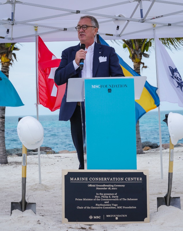 图四:MSC地中海邮轮执行主席Pierfrancesco Vago先生在MSC地中海基金会海洋保护中心动工仪式上发表讲话