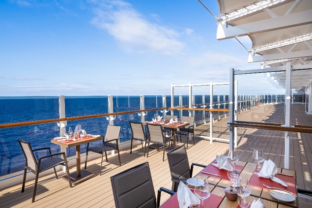 • 位于八层甲板的主厨美食广场(Chef's Court)精致典雅,内设五间环球特色餐厅及两间提供餐前餐后美酒的鸡尾酒吧,招牌餐厅美式牛排屋(Butcher's Cut)还将提供室外座位,为宾客带来愉悦的户外用餐体验