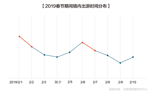 数据显示,相比国庆黄金周和其他小长假,春节期间选择国内游的游客更多,大部分游客会错峰出行,避免除夕当天在路上奔波,出境游的游客,多数也会选择在国内过新年,初二、初三再出发,因此春节前后或将出现两个旅游小高峰。