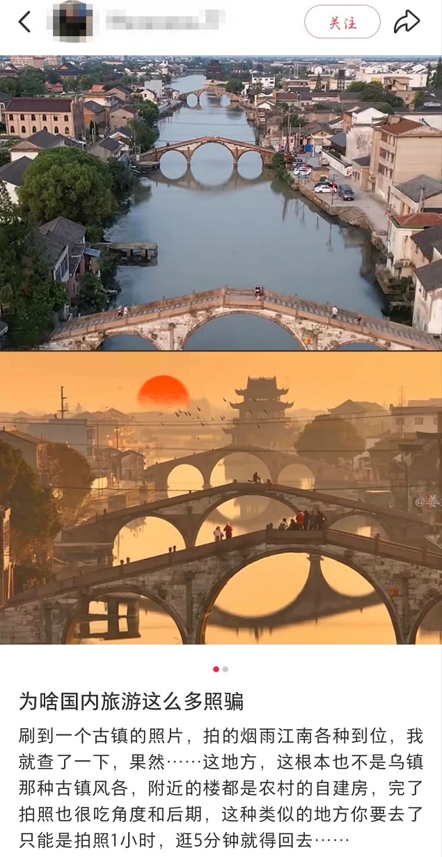对于这类踩坑,除了过于冷门小众的目的地外,剩下的去处旅游者多做一些功课,多看一些游客发的经验帖或者游记,还是可以幸免于难的。而且,确实要怪部分目的地官方号发布的百万后期宣传片误导消费者,也与博主为营造“我活得优雅又轻松”的完美人设又或者是拿钱办事只说优点脱不开关系——害人不浅,让诸多种草帖的真实性被打上问号,让旅游者费心甄别多方求证,徒增做攻略的时间。